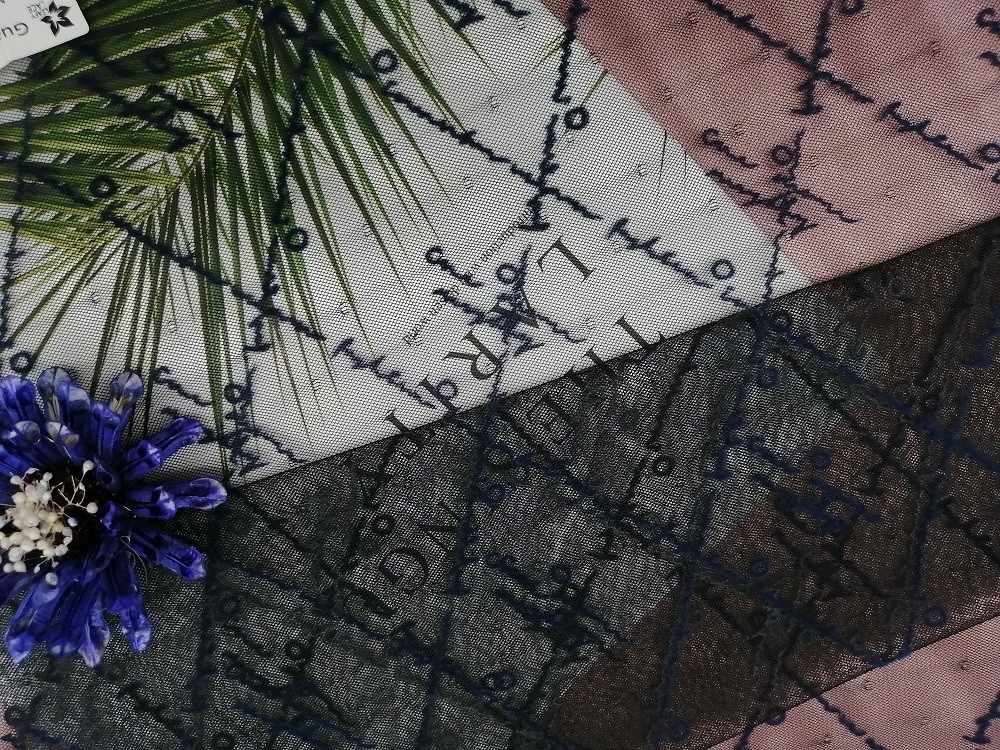 Navy Letter Tulle Mesh Flocked Mesh Fabric for Evening Dress Lady Garment Home Textile Little Girl Dress for Home Textiles, Curtain, Bedding Articles, Apparels, Hats ,Wedding Dresses, Blouses, Lady's Garments , Tablecloth, Little Girls Dresses , Fashion Female Shoes , Pants , Trousers , Shorts , Jackets, etc.