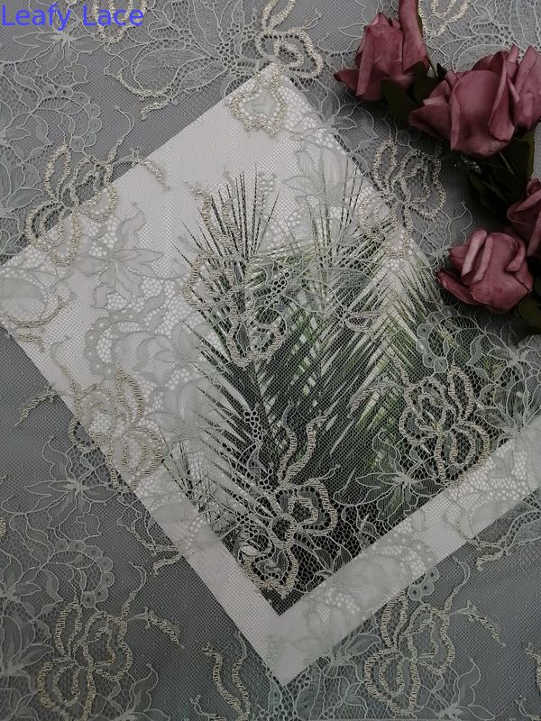 Delicate French Chantilly Eyelash Metallic Lurex Lace fabric with scallop Dress fabric Specifications: