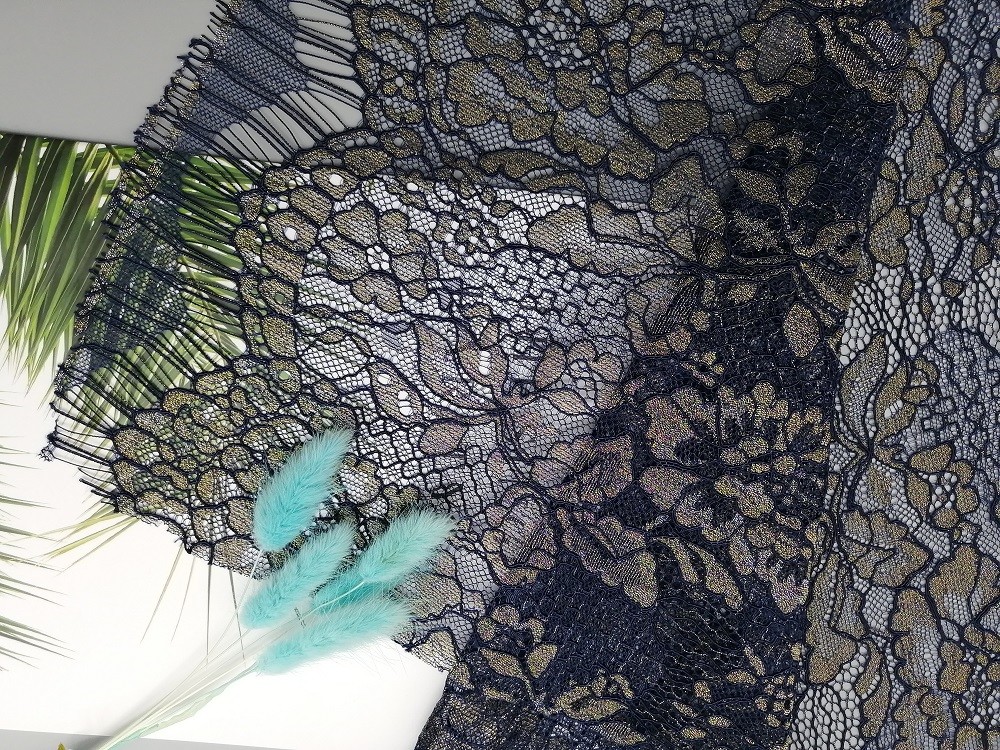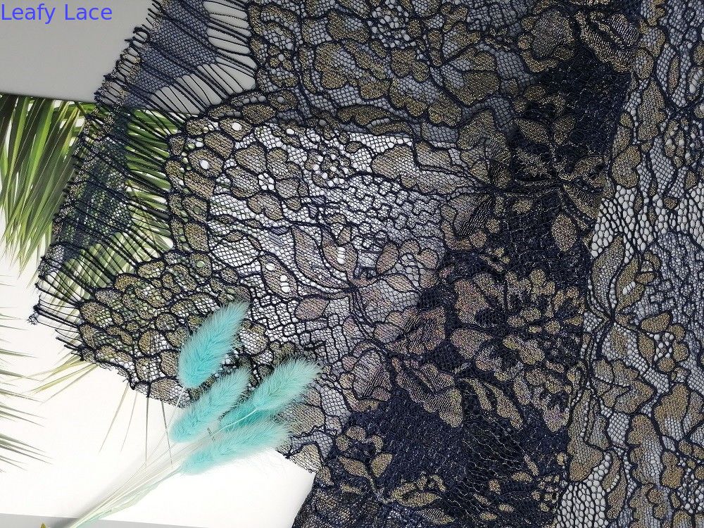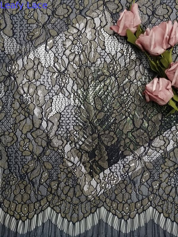 Delicate French Chantilly Eyelash Metallic Lurex Lace fabric with scallop for Wowen Dress Garment Specifications: