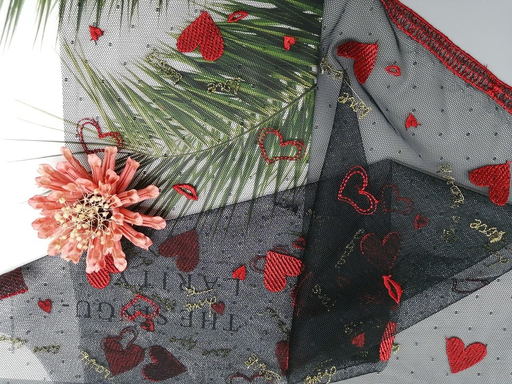 - Red Tulle Mesh Eco-friendly material colored Embroidery Fabric Lady's Garment Brands meet the requirement of OEKO-Tex Standard 100 .