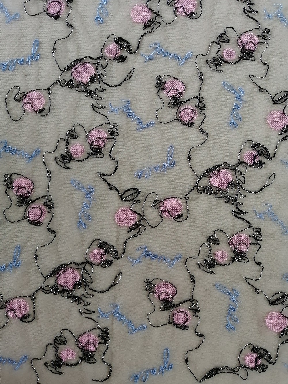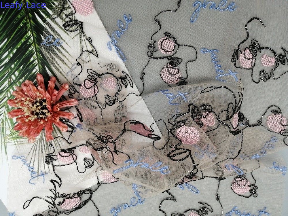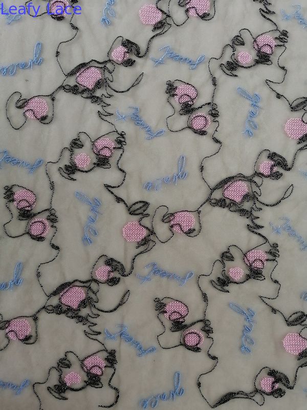 - Multi Colored Tulle Mesh Embroidered Lace fabric with letters for Garment Brands Specifications: