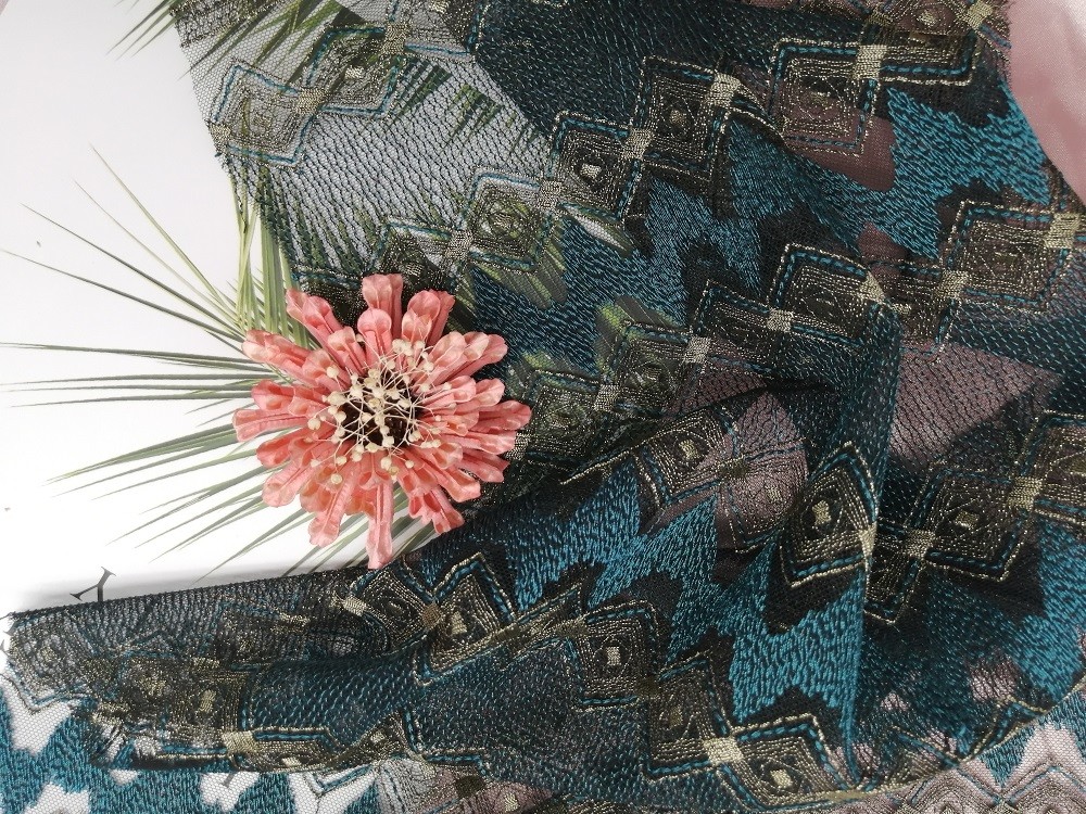 - Gold Metallic Lace Fabric Embroidery Fabric for Women Dress little Girls Dresses meet the requirement of OEKO-Tex Standard 100 .