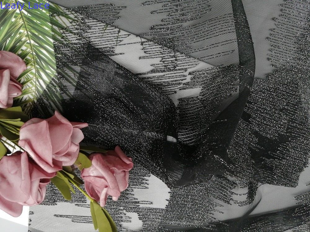 - Black Metallic Lurex Silver Yarn Geometric Line Embroidered Lace Fabric for Lady's Garment Female Dresses Specifications