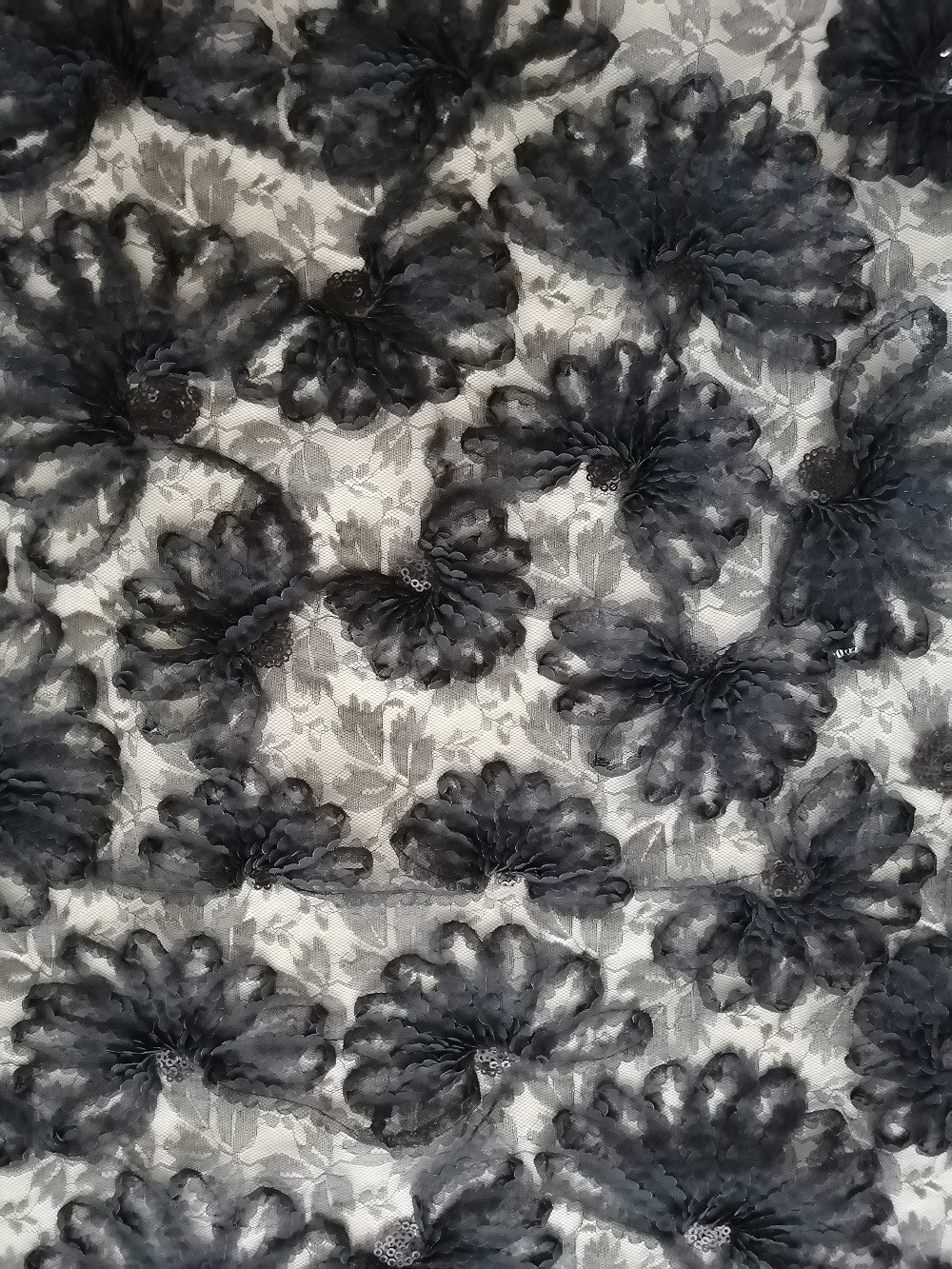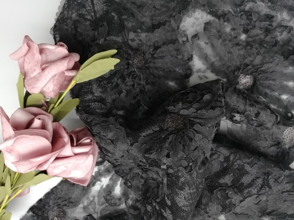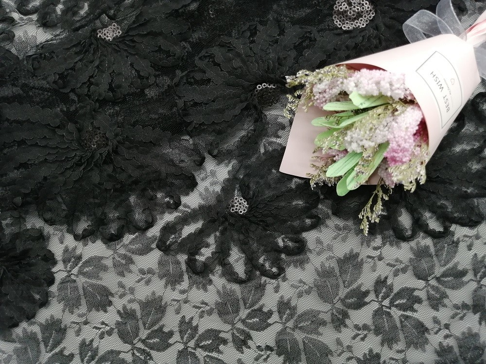 | Style: | 3D Black Sequin Lace | Feature: | Cored Embroidery |
