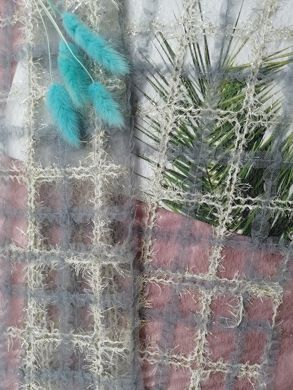 | Style: | Blue Geometric Lurex Lace | Feature: | Square Pattern Lace |