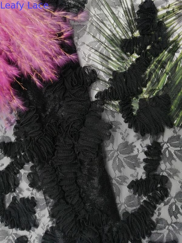 Black Floral Lace Applique Embroidery fabric Evening Dress Fabric Tulle Lace Specifications: