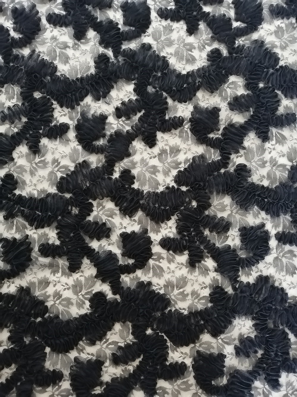 Black Floral Lace Applique Embroidery fabric Evening Dress Fabric Tulle Lace for Women Long Skirt Dress Garment Little Girls Dresses, Home Textiles, Curtain, Bedding Articles, Apparels, Hats ,Wedding Dresses, Blouses, etc.