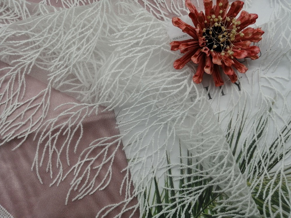 - White Corded Lace Fabric Tulle Mesh Embroidery for Wedding Dresses Bridal Dress Bedding Articles Can meet the requirement of OEKO-Tex Standard 100 .