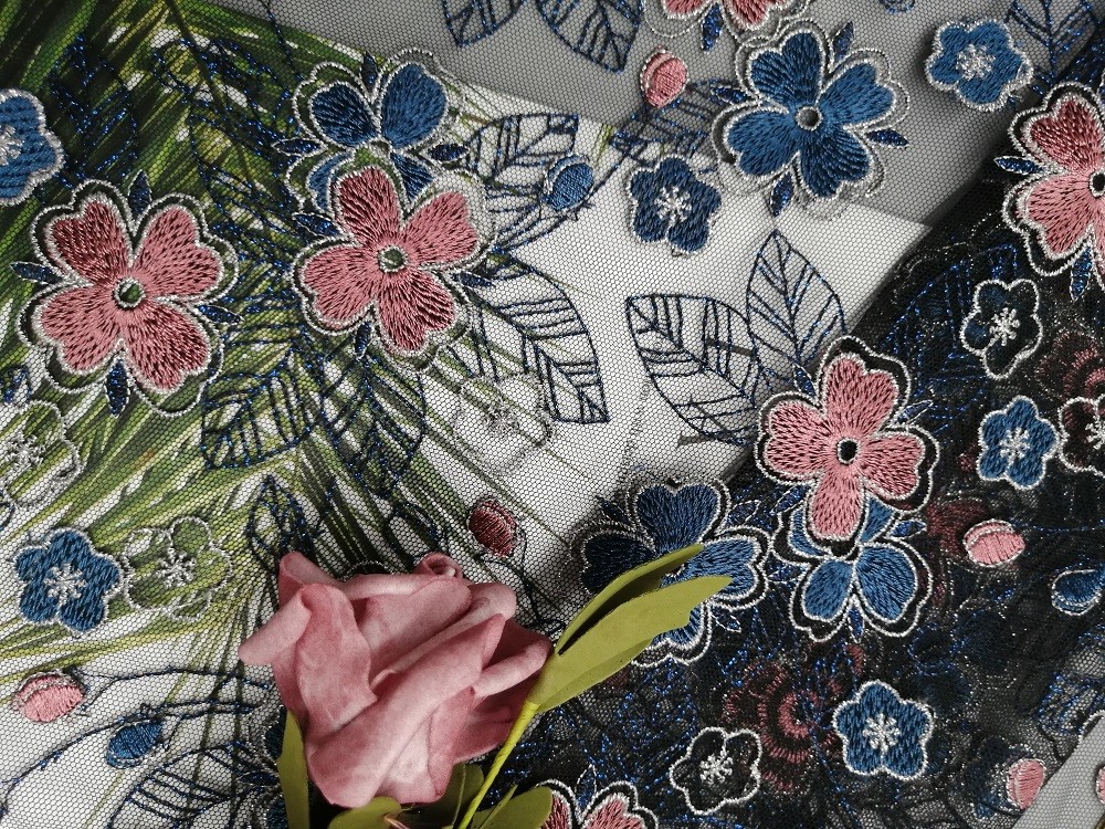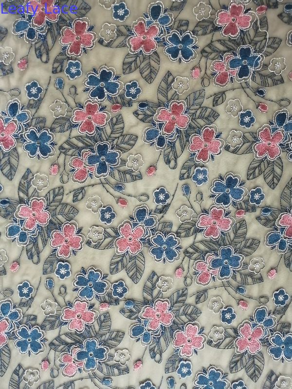 Navy Pink Lurex colored Embroidered Lace Fabric for Garment Brands Home Textiles tablecloth Bedding Article Specifications: