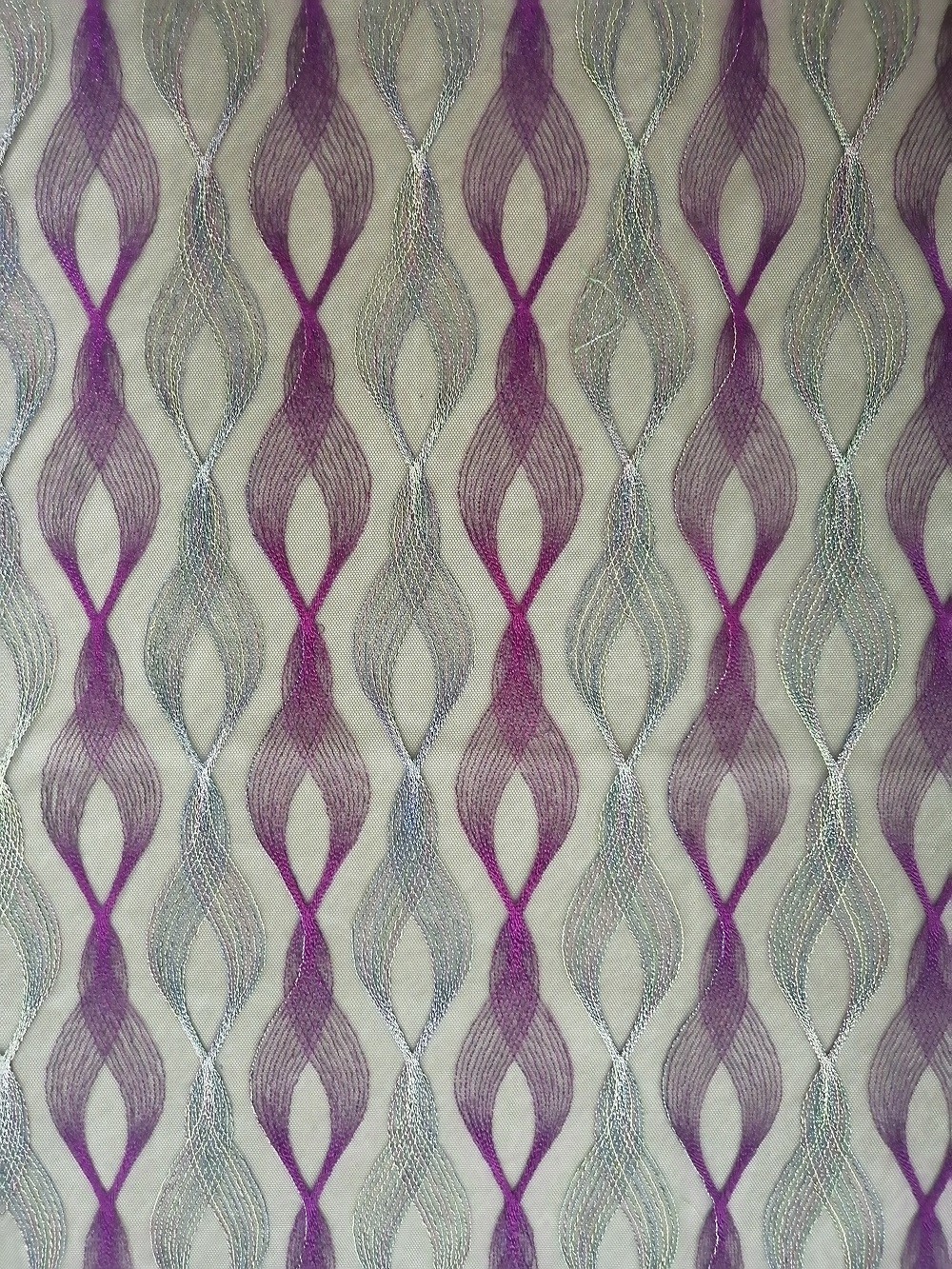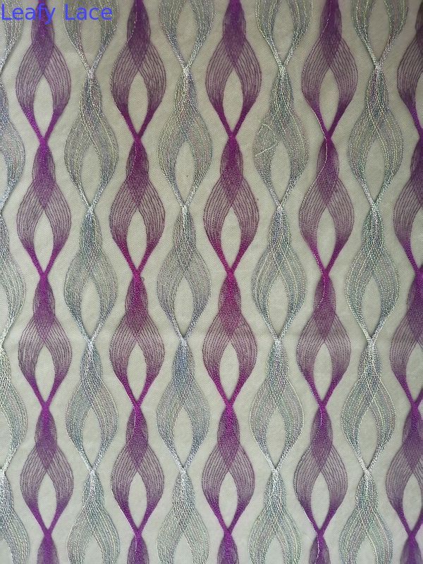Purple Geometric Colored Embroidered Fabric for Evening Dress Home Textiles Little Girls Dress Bedding Article for Home Textiles, Curtain, Bedding Articles, Apparels, Hats ,Wedding Dresses, Blouses, Lady's Garments , Tablecloth, Little Girls Dresses , Fashion Female Shoes , Pants , Trousers , Shorts , Jackets, etc.