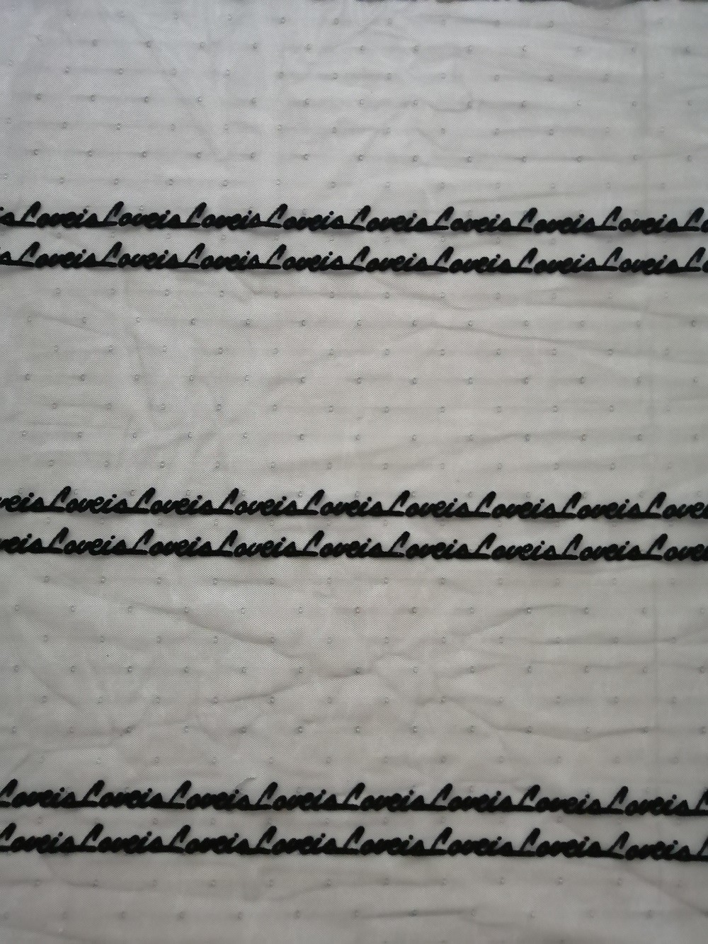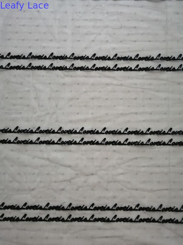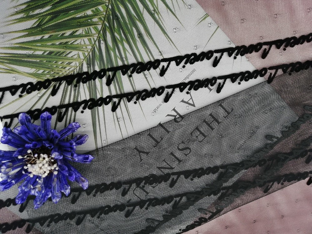 Black Letter Tulle Mesh Flocked Mesh Fabric for Evening Dress Lady Garment Home Textile Little Girl Dress for Home Textiles, Curtain, Bedding Articles, Apparels, Hats ,Wedding Dresses, Blouses, Lady's Garments , Tablecloth, Little Girls Dresses , Fashion Female Shoes , Pants , Trousers , Shorts , Jackets, etc.