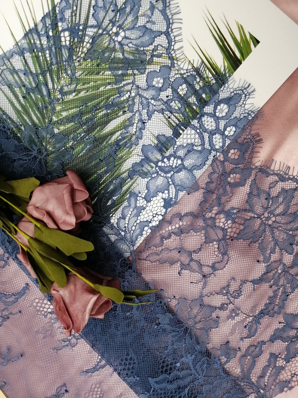 - Sky Blue French Chantilly Lace Fabric Tulle Lace for Evening Dress Lady's Garment Brands Home Textile Little Girl Dress can meet the requirement of OEKO-Tex Standard 100 .