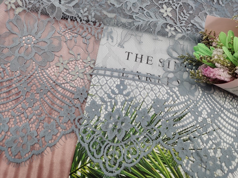 Grey Eyelash Scallop Edge Corded Lace Fabric for Evening Dress Lady's Garment Brands Home Textile Little Girl Dress Specifications: