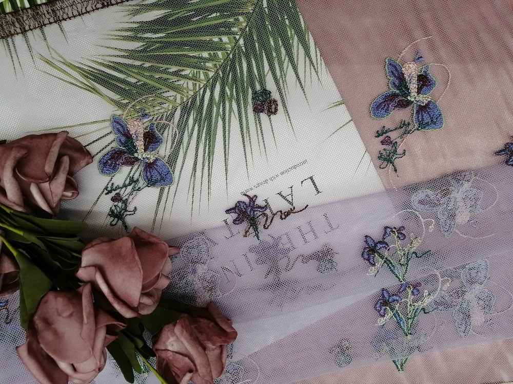 Colorful Delicate Tulle Mesh Colored Embroidery Fabric for Evening Dress Lady's Dress Garment Brands Little Girl Dress is for Home Textiles, Curtain, Bedding Articles, Apparels, Hats ,Wedding Dresses, Blouses, Lady's Garments , Tablecloth, Little Girls Dresses , Fashion Female Shoes , Pants , Trousers , Shorts , Jackets, etc.