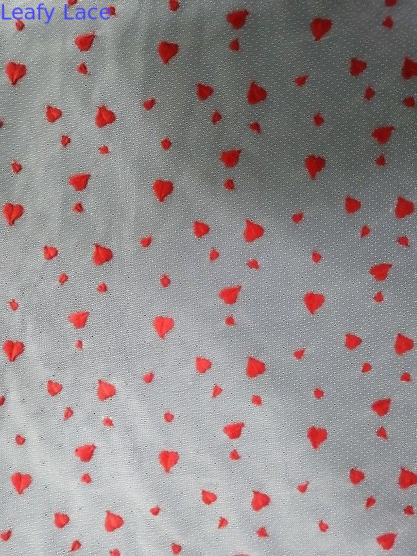 Red Heart Shape Embroidery Embroidered Lace Fabric for Evening Dress Lady's Dress Garment Brands Little Girl Dress is for Home Textiles, Curtain, Bedding Articles, Apparels, Hats ,Wedding Dresses, Blouses, Lady's Garments , Tablecloth, Little Girls Dresses , Fashion Female Shoes , Pants , Trousers , Shorts , Jackets, etc.