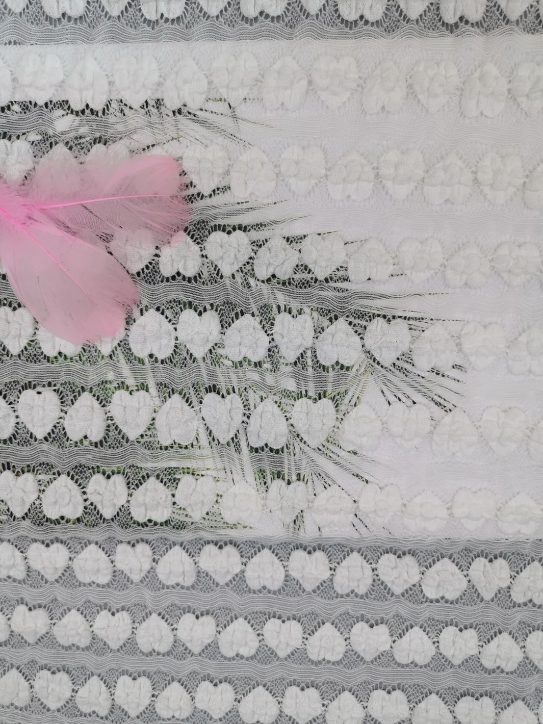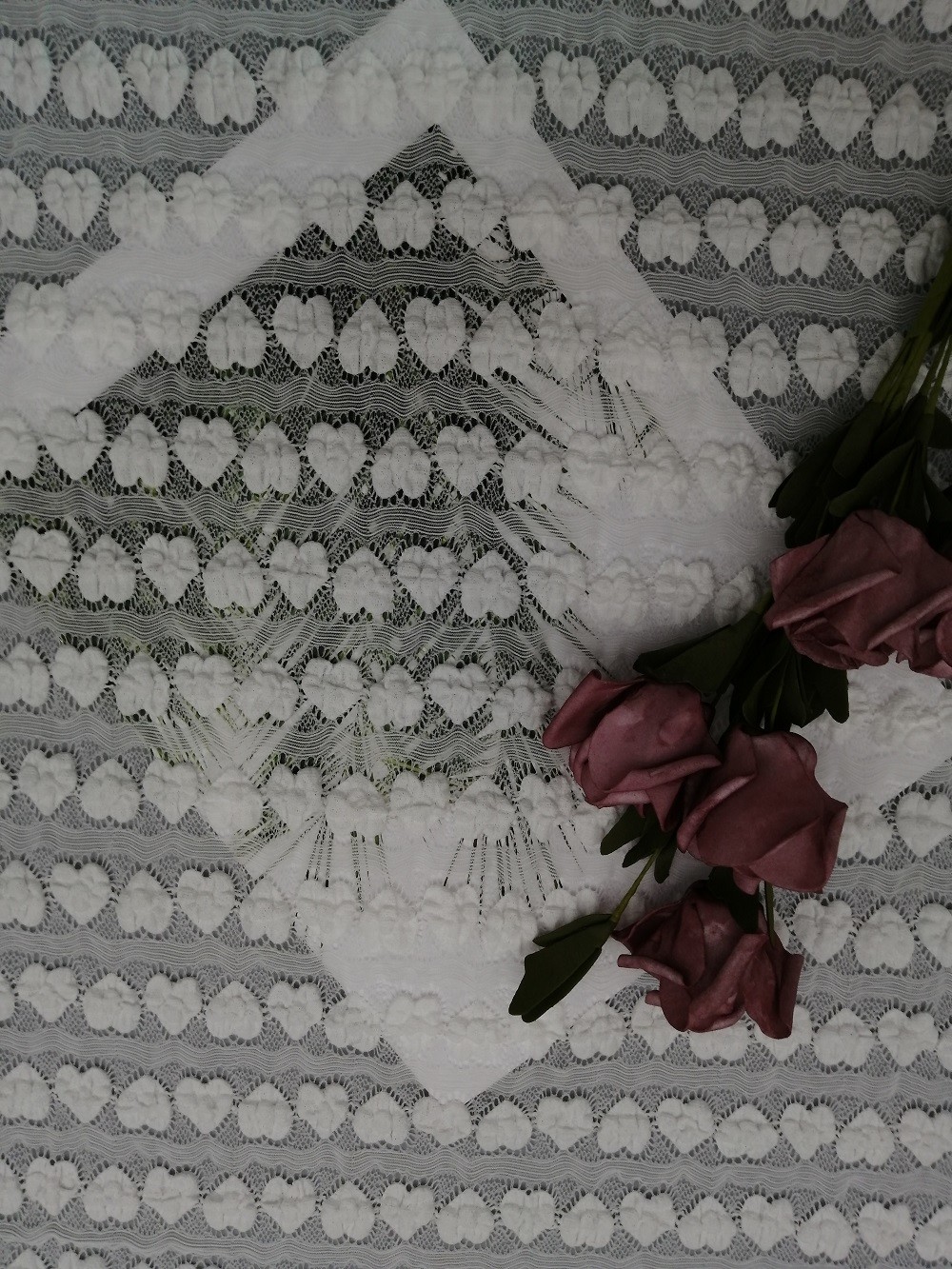 | Product Name: | Stretch Lace Fabric | Feature: | White Heart Shape Lace |