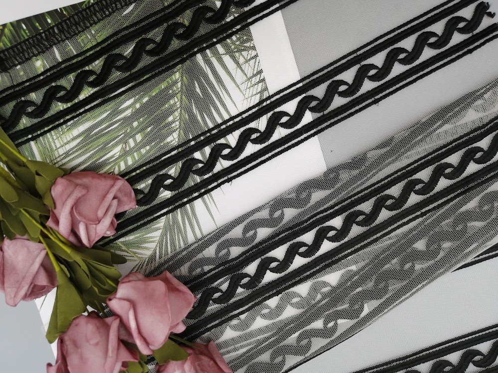 All Over Black Linear Geometric Embroidered Lace Fabric for Evening Dress Lady's Dress Garment Brands Little Girl Dress is for Home Textiles, Curtain, Bedding Articles, Apparels, Hats ,Wedding Dresses, Blouses, Lady's Garments , Tablecloth, Little Girls Dresses , Fashion Female Shoes , Pants , Trousers , Shorts , Jackets, etc.