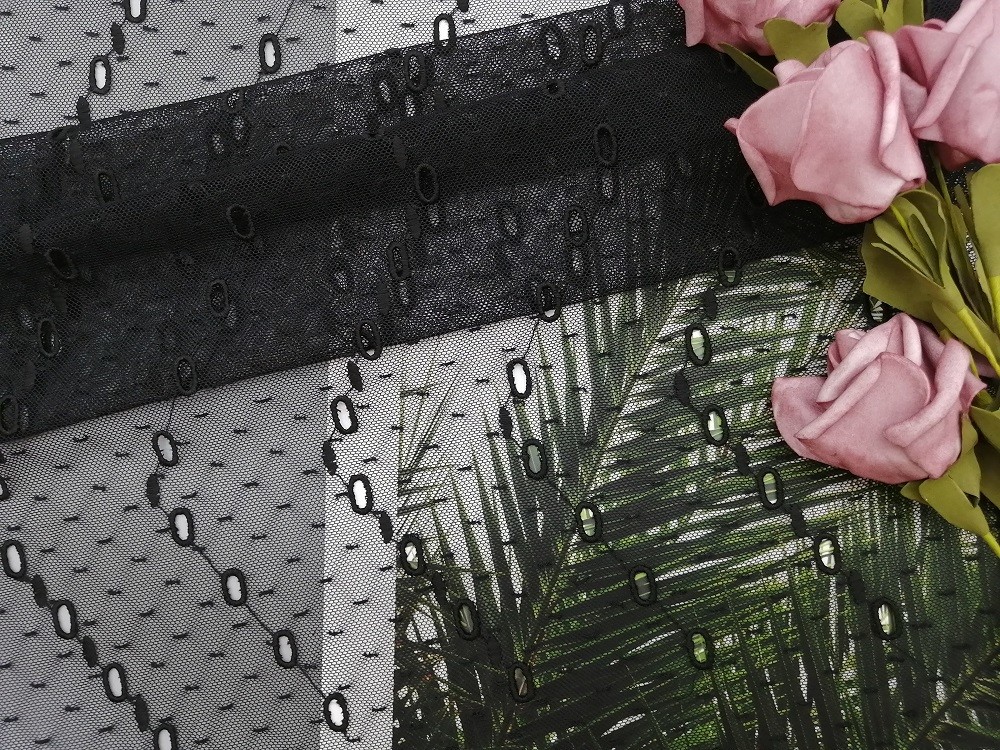 Black Polyester Eyelet Dot Mesh Embroidered Lace Fabric for Evening Dress Lady's Dress Garment Brands Little Girl Dress Specifications: