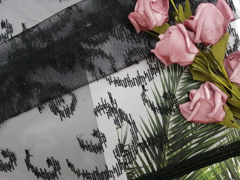 Tulle Mesh Crochet Black Embroidered Lace Fabric for Evening Dress Lady's Dress Garment Brands Little Girl Dress is for Home Textiles, Curtain, Bedding Articles, Apparels, Hats ,Wedding Dresses, Blouses, Lady's Garments , Tablecloth, Little Girls Dresses , Fashion Female Shoes , Pants , Trousers , Shorts , Jackets, etc.