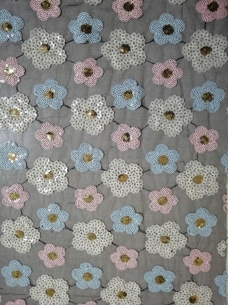 Colored Floral Sequin Embroidered Fabric Party Fabric for Evening Dress Lady's Dress Garment Brands Little Girl Dress is for Home Textiles, Curtain, Bedding Articles, Apparels, Hats ,Wedding Dresses, Blouses, Lady's Garments , Tablecloth, Little Girls Dresses , Fashion Female Shoes , Pants , Trousers , Shorts , Jackets, etc.