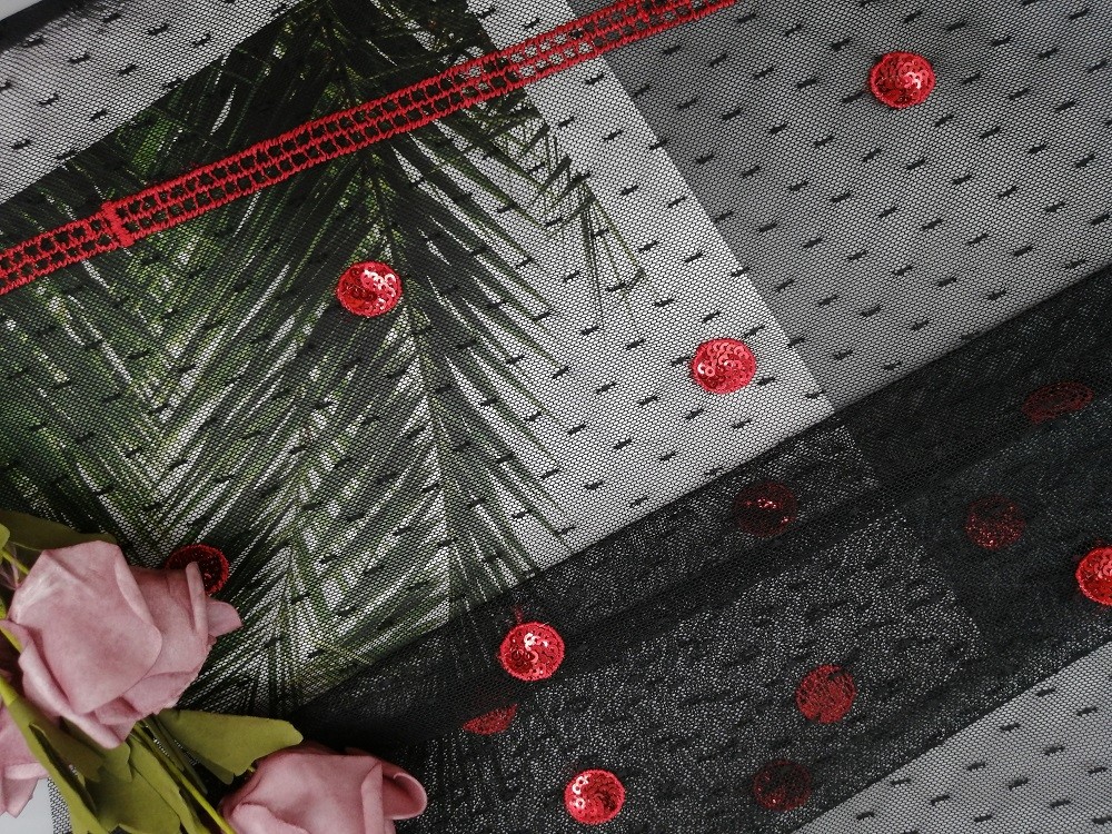 Highlight: | Red Circle Sequin Embroidered Fabric,125CM Sequin Embroidered Fabric,AZO Free Red Sequin Fabric |