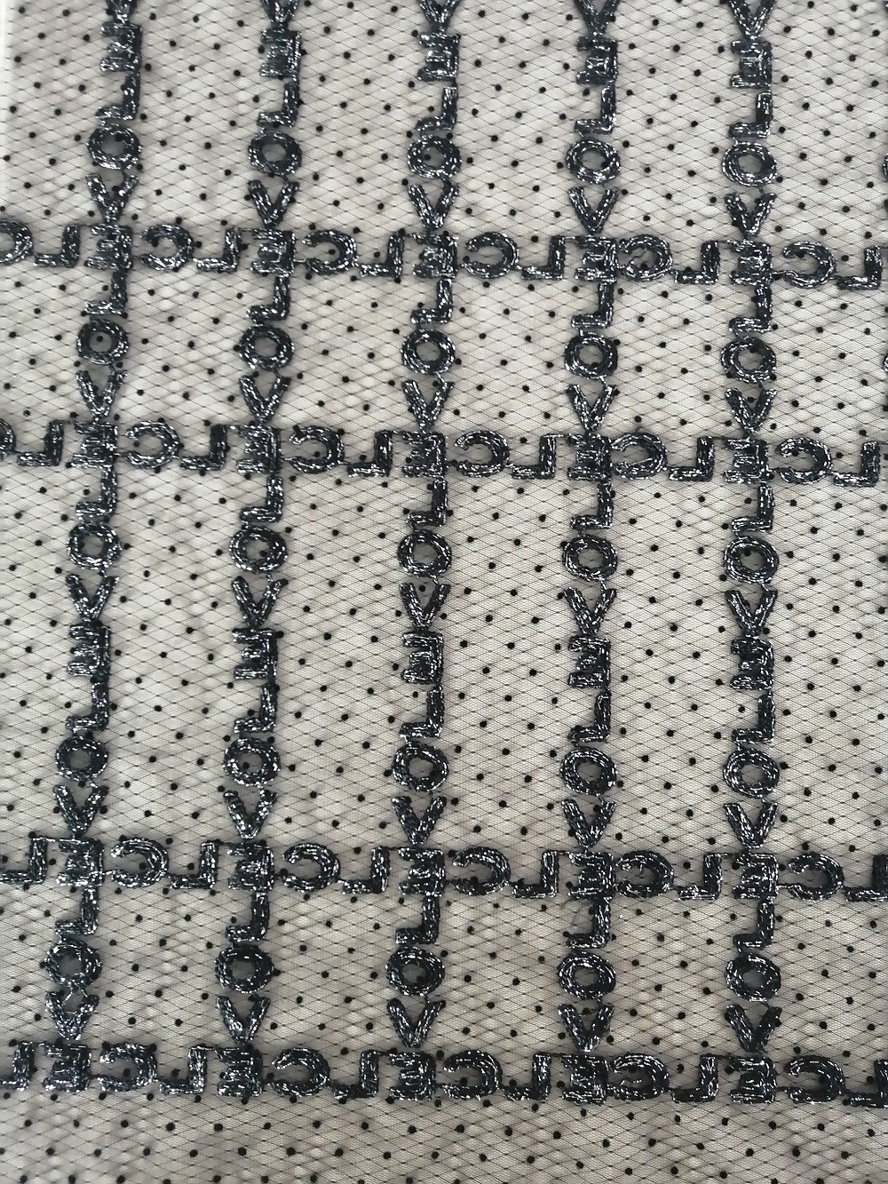 Black Flocked Glitter Tulle Lurex Embroidery Metallic Lace for Evening Dress Lady's Dress Female Dress Little Girl Dress is for Home Textiles, Curtain, Bedding Articles, Apparels, Hats ,Wedding Dresses, Blouses, Lady's Garments , Tablecloth, Little Girls Dresses , Fashion Female Shoes , Pants , Trousers , Shorts , Jackets, etc.