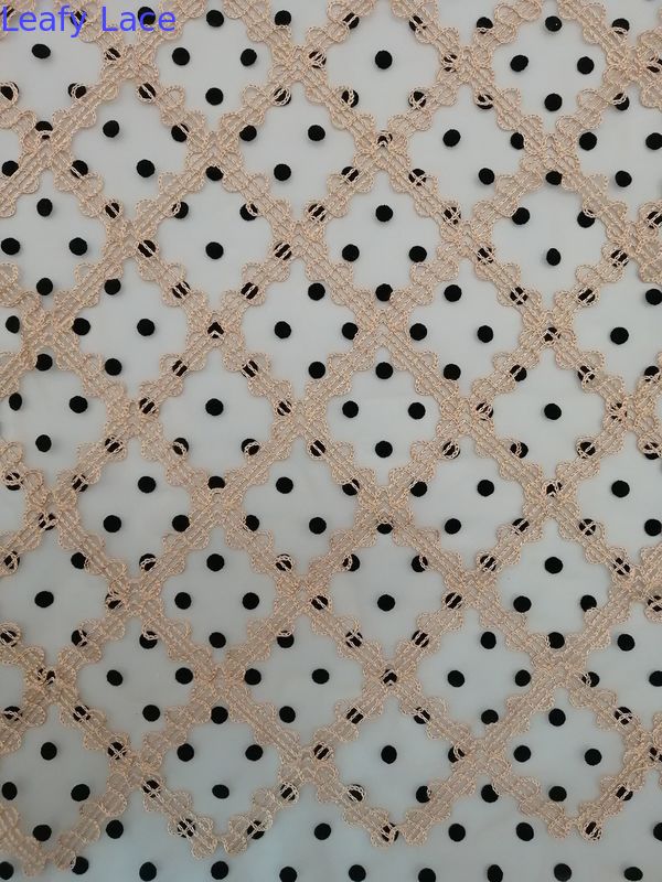 Polka Dot Flock Embroidery Flocked Tulle Mesh Flocked Mesh Fabric For Female Dress Lady dress Decoration Girl Dress can meet the requirement of OEKO-Tex Standard 100 .