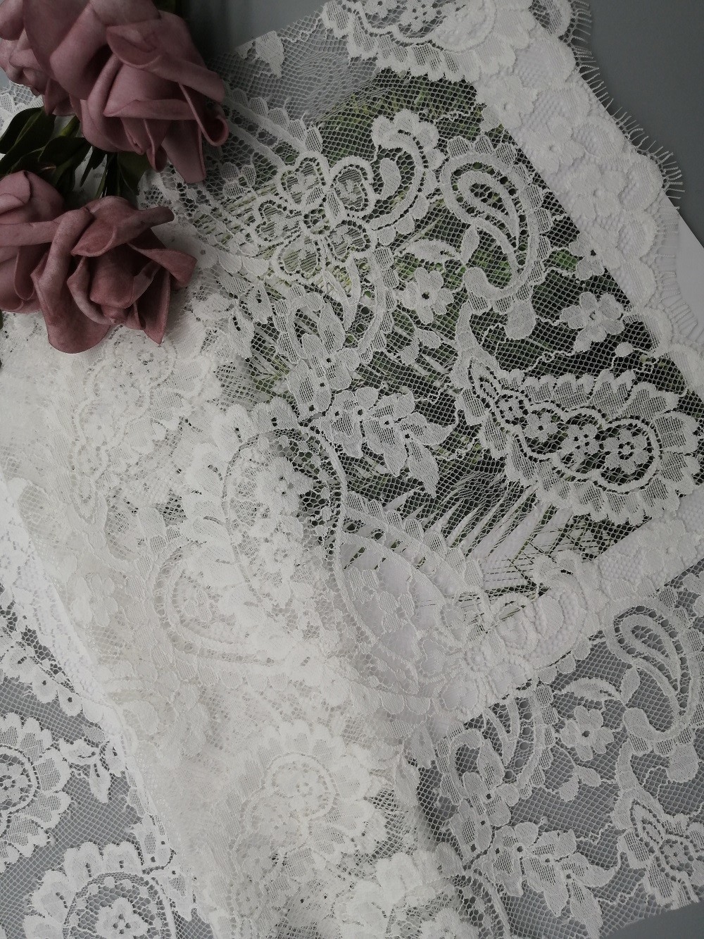 Lightweight lace Paisley Lace French Chantilly Lace Bridal Fabric Garment Brand Lace is suitable for Women Dresses, Skirt, Little Girls dresses , Home Textiles, Curtain, Bedding Articles, Apparels, Hats ,Wedding Dresses, Blouses, etc.