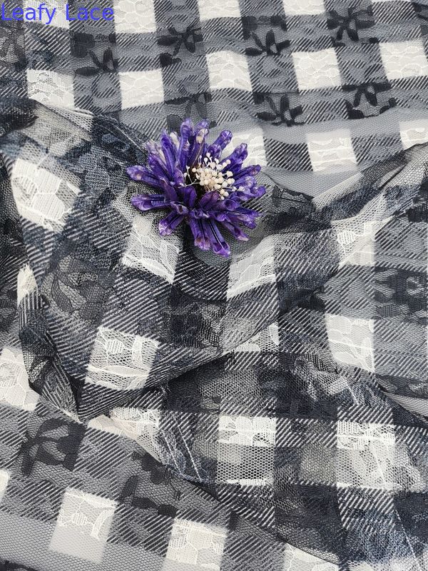 - Plaid pattern lace printed Lace Fabric checked embroidery striped Lace can meet the requirement of OEKO-Tex Standard 100 .