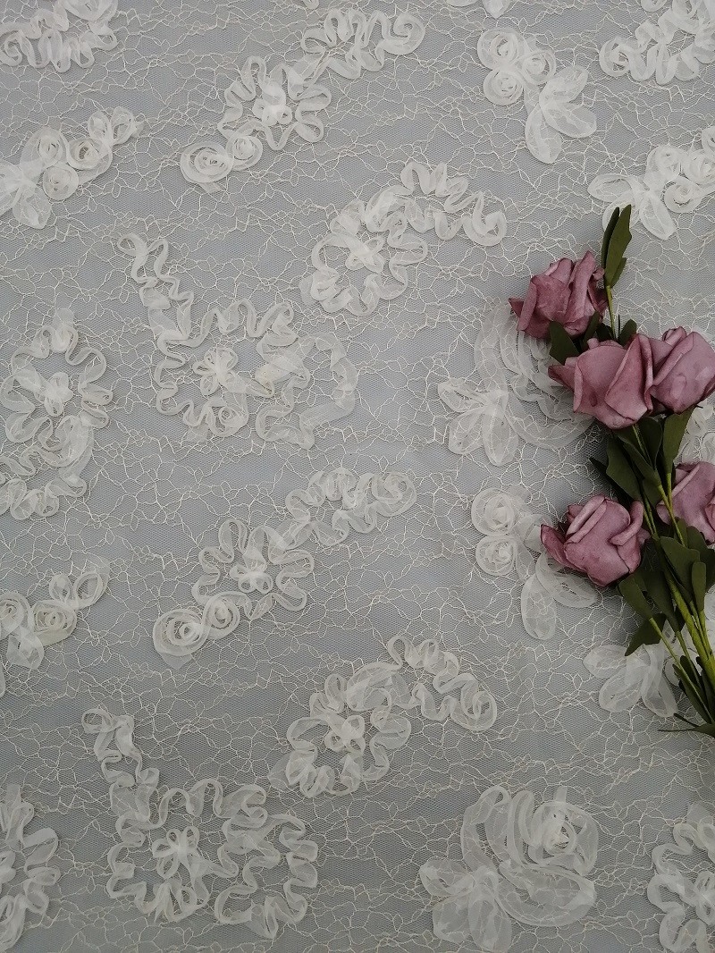 Crochet lace fabric Corded Lace Embroidery Silk Embroidery Wedding Dress Fabric for Women Long Skirt Dress Garment Little Girls Dresses, Home Textiles, Curtain, Bedding Articles, Apparels, Hats ,Wedding Dresses, Blouses, etc.