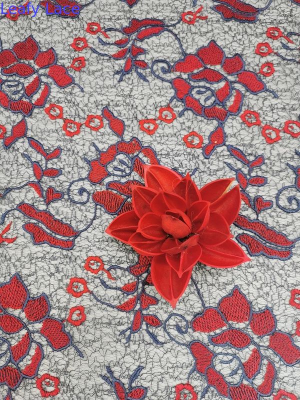 - Red Large Floral Colored Embroidery Crochet lace fabric Lace Female Dress can meet the requirement of OEKO-Tex Standard 100 .