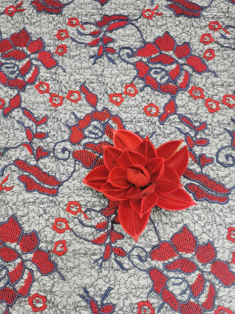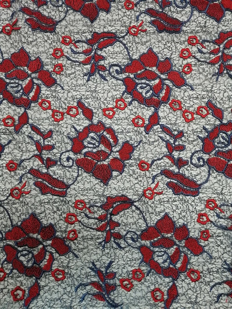Red Large Floral Colored Embroidery Crochet lace fabric Lace Female Dress for Women Long Skirt Dress Garment Little Girls Dresses, Home Textiles, Curtain, Bedding Articles, Apparels, Hats ,Wedding Dresses, Blouses, etc.
