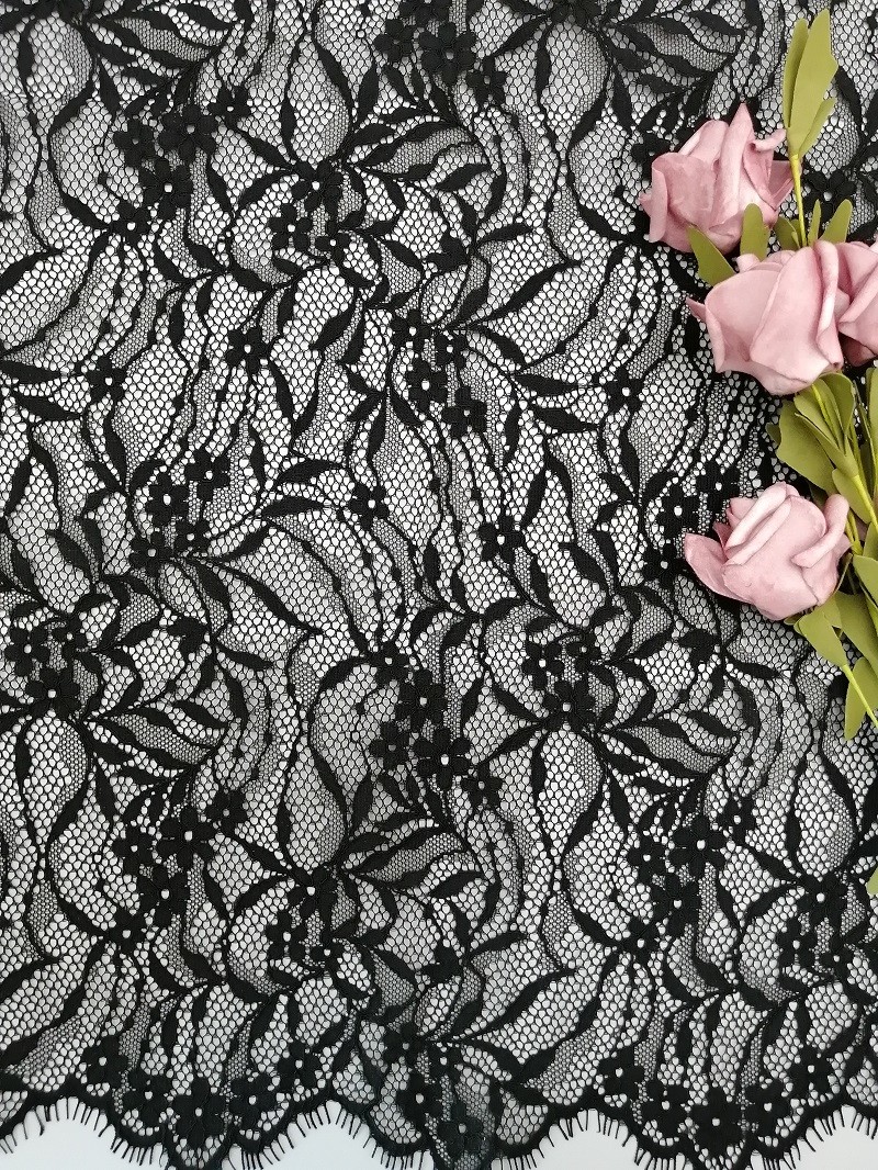 - Black Tulle mesh French Chantilly Lace light lace Eyelash lace with scallop can meet the requirement of OEKO-Tex Standard 100 .