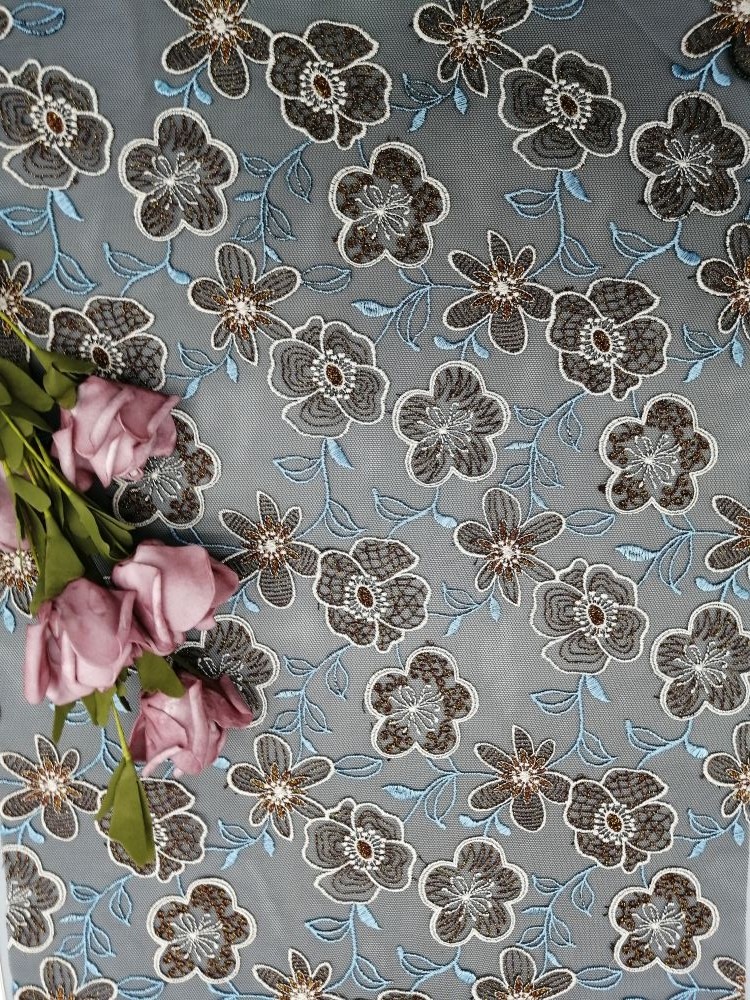 Floral Lace Colored Embroidery Fabric Women Garment Cloth for Women Long Skirt Dress Garment Little Girls Dresses, Home Textiles, Curtain, Bedding Articles, Apparels, Hats ,Wedding Dresses, Blouses, Even Men Shirt ,etc.