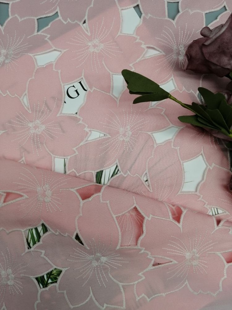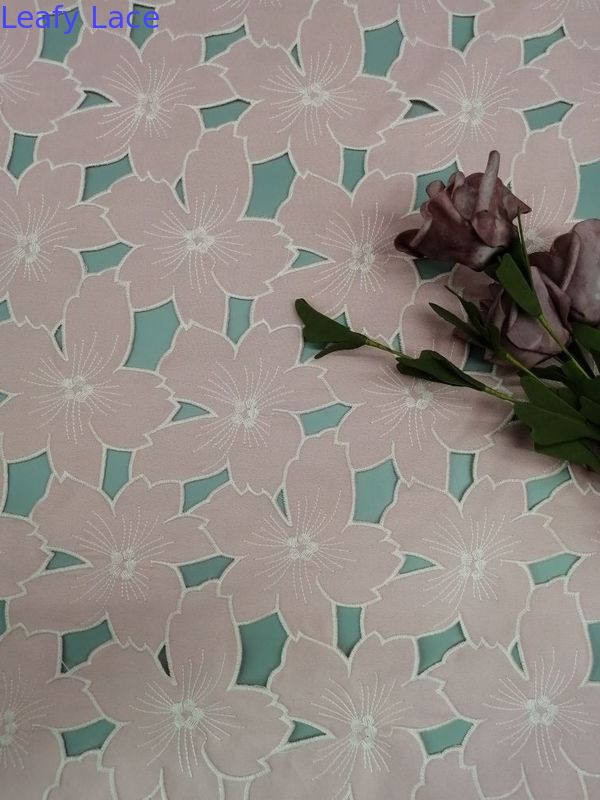 100% polyester Laser-cut Lace Applique Embroidery Fabric Dress Fabric