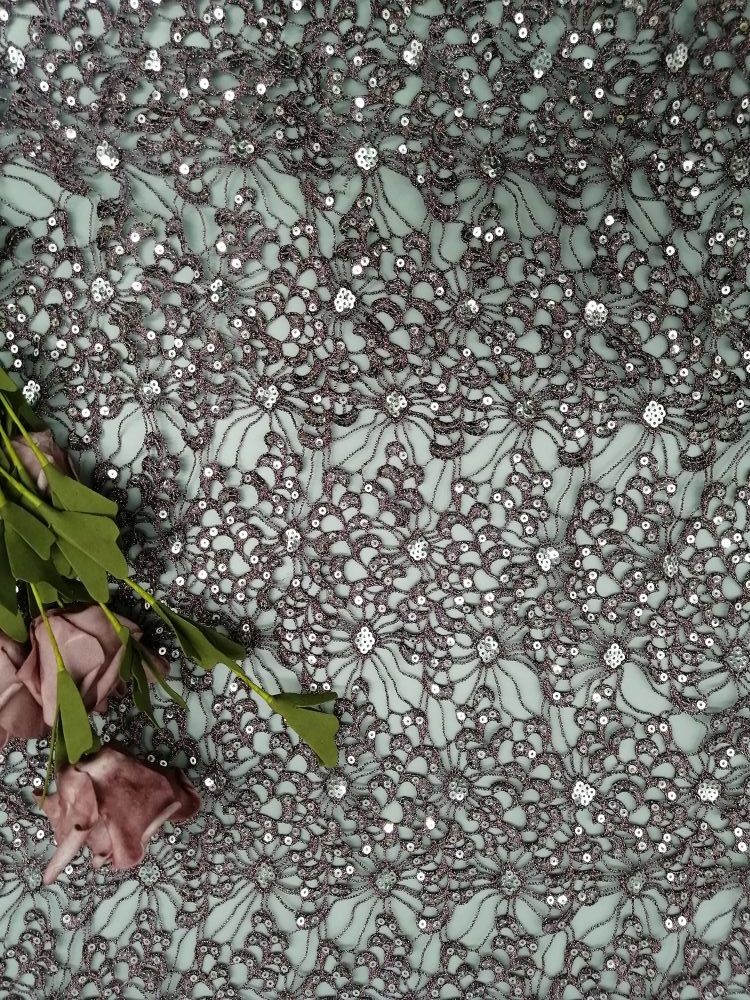 - Metallic Glitter Lace Sequin Embroidered Fabric Chemical Lace can meet the requirement of OEKO-Tex Standard 100 .