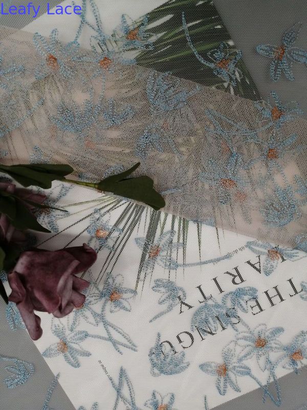 - Floral Lace Colored Embroidery Fabric Tulle Mesh Embroidery can meet the requirement of OEKO-Tex Standard 100 .