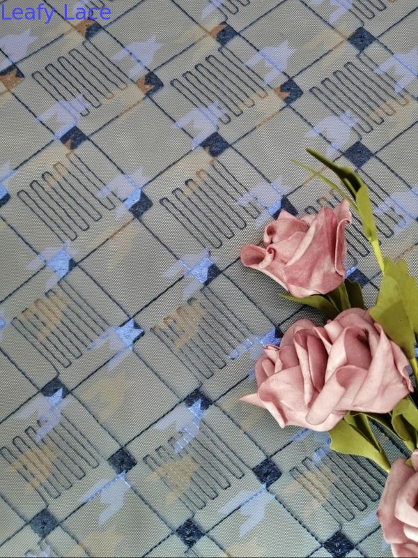 Navy color Printing Embroidery Digital Printed Lace Fabric Digital printing grid Tulle