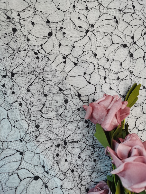 Black Yarn Cording Lace Embroidered Lace Fabric Two-tone Lace Fabric