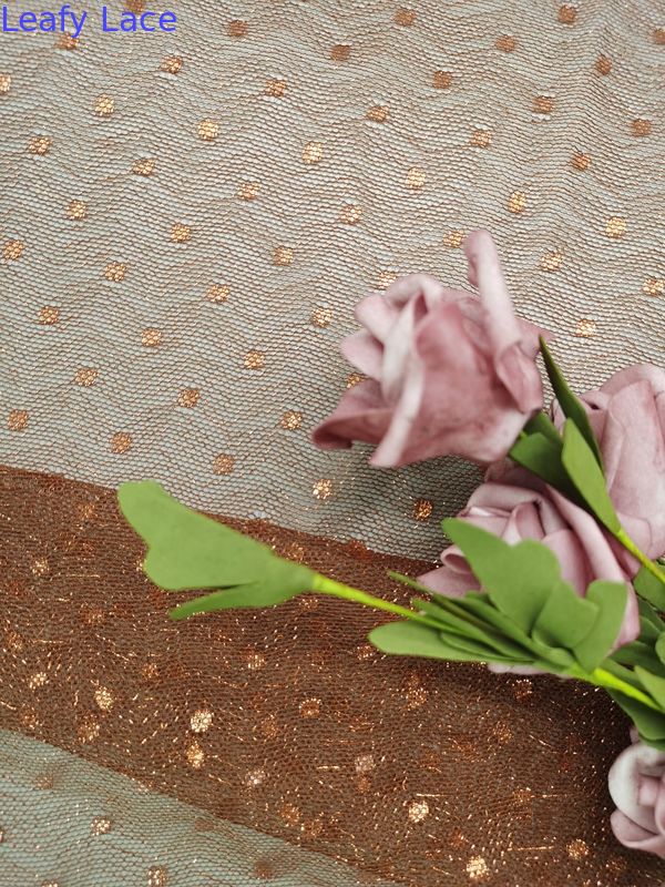 -Brown Color Embroidered Lace fabric Metallic Tulle Lace Light Weight Dot Lace can meet the requirement of OEKO-Tex Standard 100 .