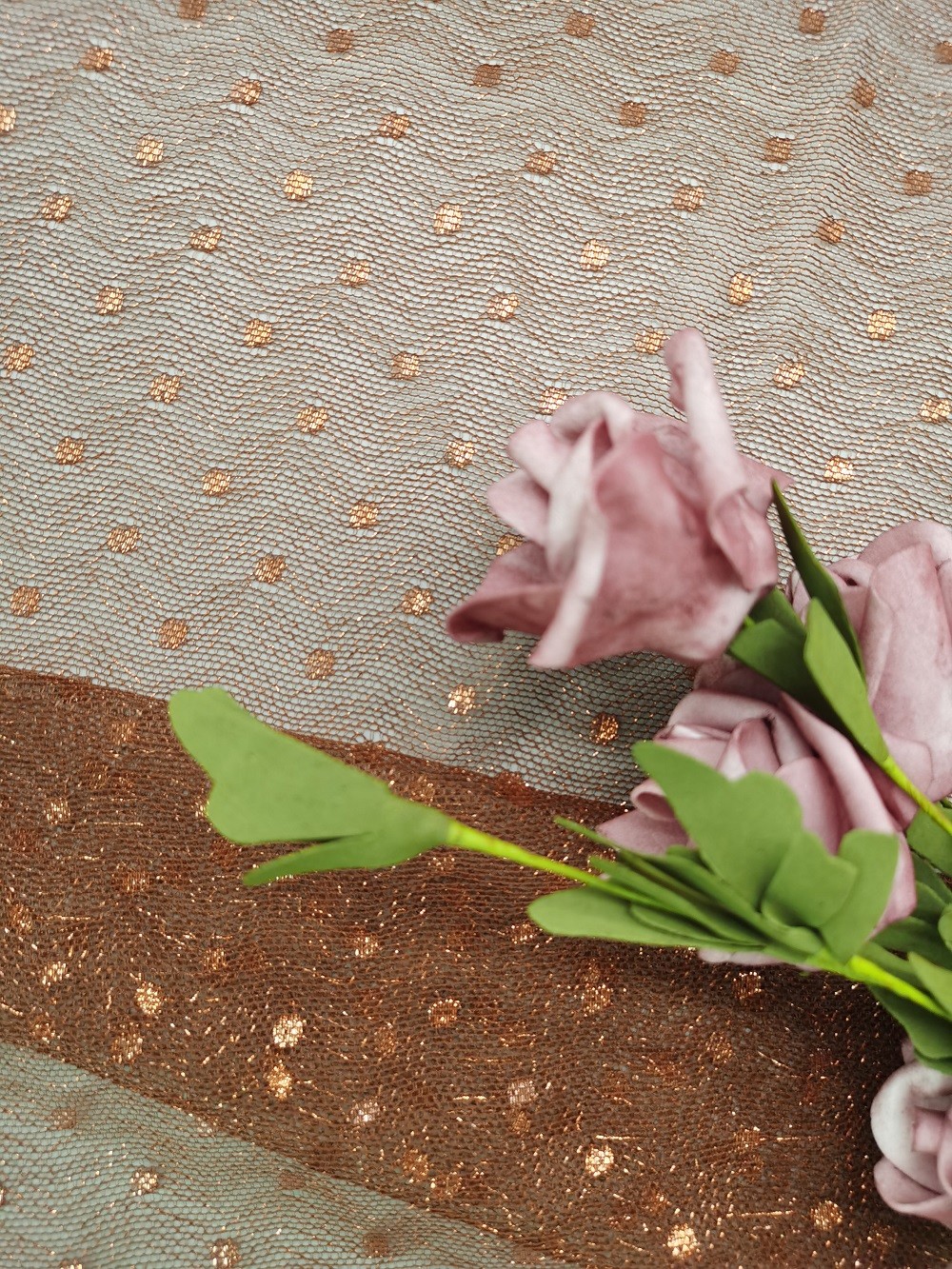 Brown Color Embroidered Lace fabric Metallic Tulle Lace Light Weight Dot Lace is for Women Long Skirt Dress Garment Little Girls Dresses,Home Textiles, Curtain, Bedding Articles, Apparels, Hats ,Wedding Dresses, Blouses, Even Men Shirt ,etc.
