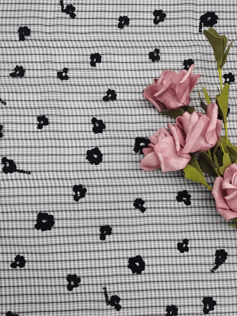 Flower Tulle Flocked Mesh Fabric Mesh with flocking design :