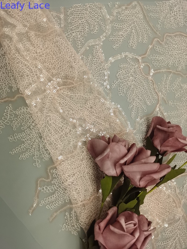 Highlight: | Leafy Pink Sequin Lace,Poly Embroidery Yarn Pink Sequin Lace,Leafy Sequin Lace Material |