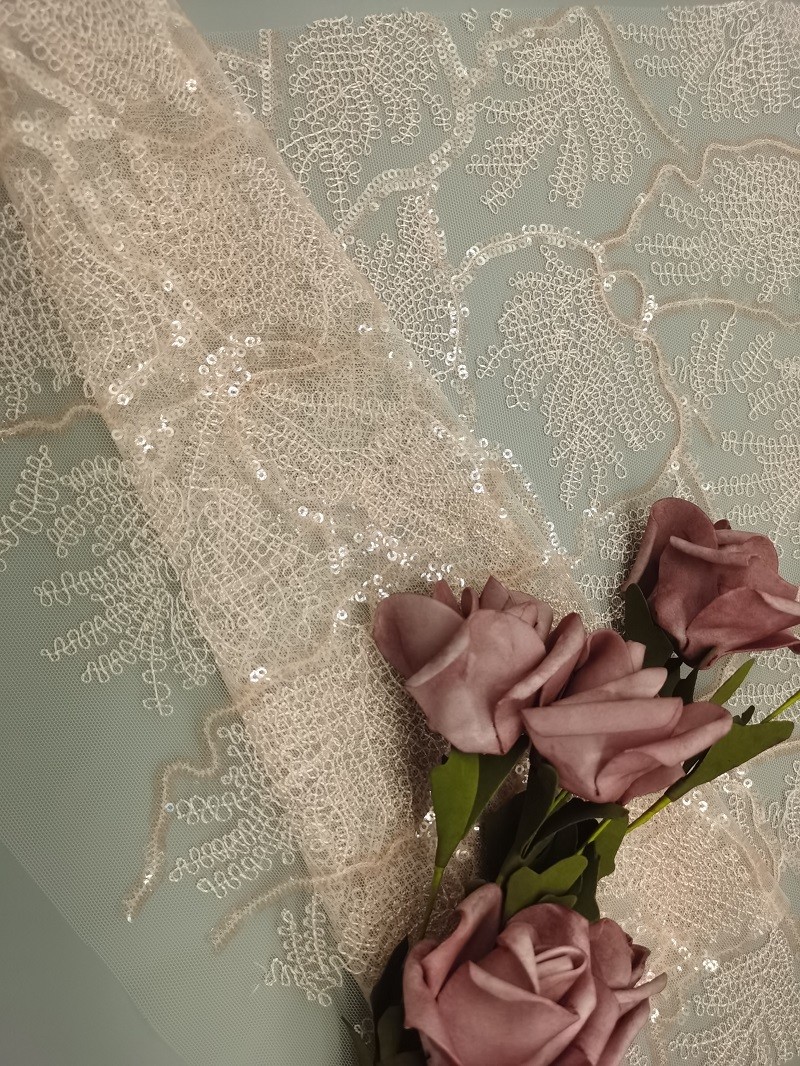 Production Name: | Sequin Embroidered Fabri | Feature: | Sequin Tulle Fabric |