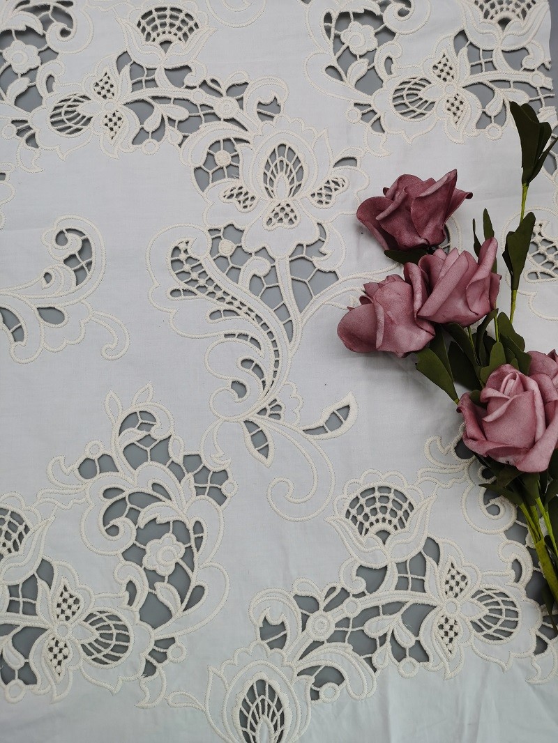 -Material: Embroidered Lace Fabric is made of 100% high quality cotton fabric which is soft . This super Laser -Cut Lace Fabric provides great breathability.