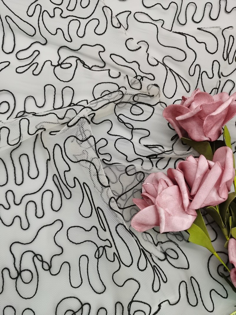 White Embroidered Lace Fabric Tulle Mesh Embroidery Wedding Dress Fabric: