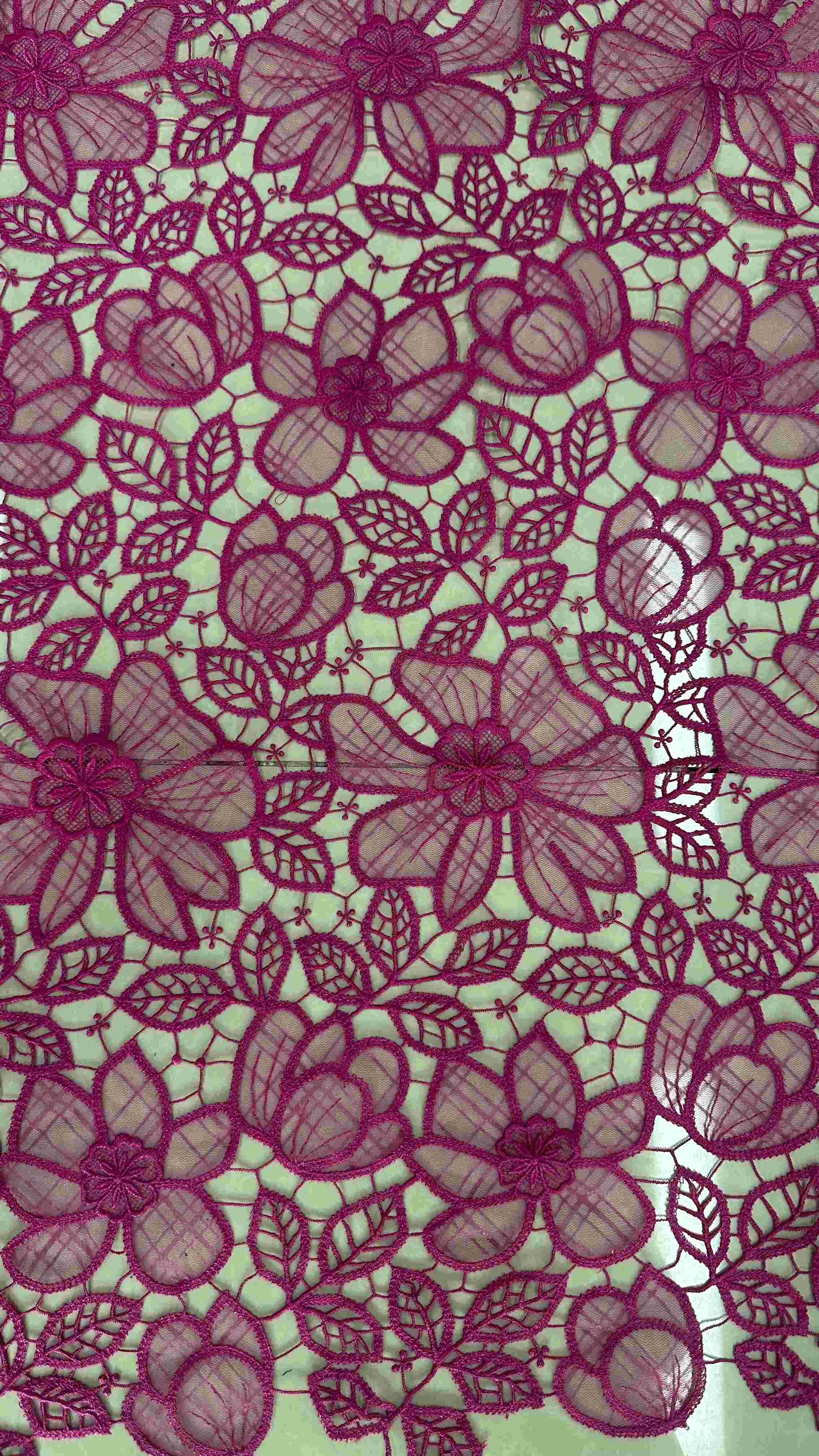 Fushcia Chemical Floral Embroidery Lace Fabric 119CM Width