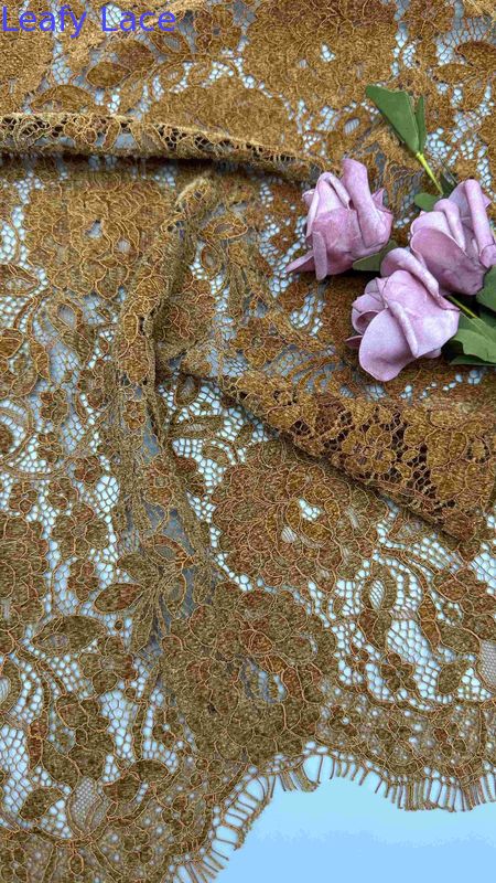 | Highlight: | Floral Scalloped Edge Lace Fabric,Brown Color Chenille Yarn Lace Fabric,Women Dress Lace Fabric |