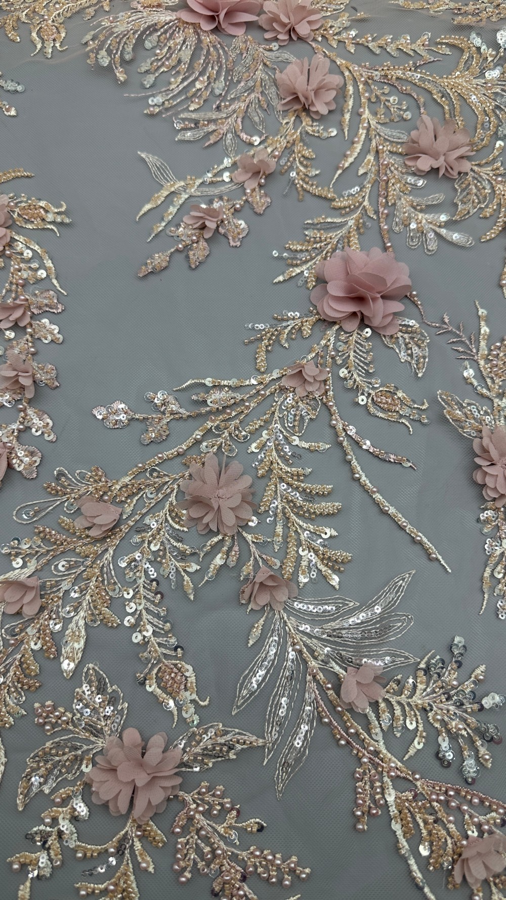 | Production Name | Flower Sequin Embroidered Fabric in champange with Sequin embellishments |