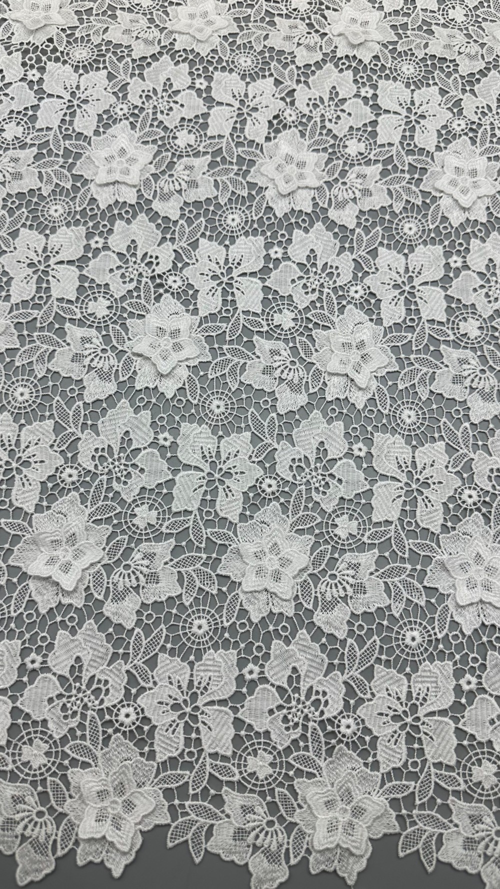This Embroidered Lace Cloth comes in a beautiful white color, adding a touch of elegance to any piece it is used for. Its 15-meter length and 125cm width make it a versatile choice for any project, ensuring that you have ample material to work with.